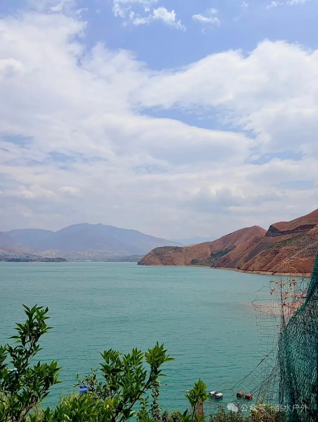 第一眼我只想感叹怎么有这么好看的风景,蓝绿色的湖泊在群山之中,不远处是一些村落和渔船。