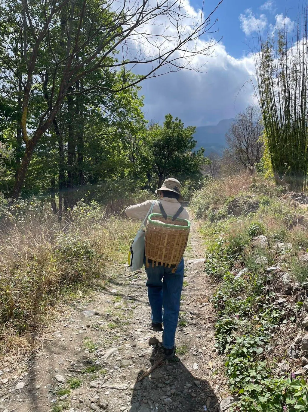 Curious, we wanted our nature guide to open our eyes to the richness of Dali's vegetation. Just before our departure that afternoon, it unexpectedly began to rain heavily, marking the first time we'd seen rain in our week-long visit. Here, the rain falls in the east and the sun shines in the west. When we met our guide, Phoebe, the diminutive figure pulled a treasure trove from the trunk of her car. She gave Haiyun and Haina a collection of Japanese children's manga and French picture books she had translated herself. Standing under the hood of the car, Phoebe shared her hand-drawn artwork with us, taking shelter from the rain. After a short wait, the rain subsided, and we headed back into the mountains.
