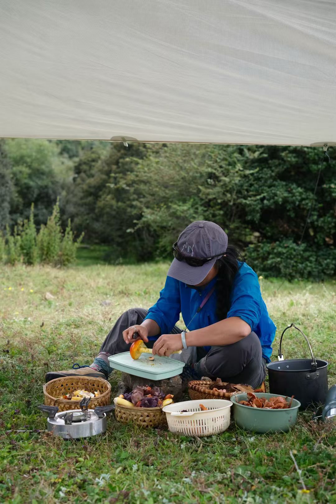 Li Zhenhao es de Enshi, Hubei. Trabaja en el ámbito de la educación y la formación de niños desde hace muchos años y dirige su propio campamento de verano "Sai Sai's Travel Activity Group". Es entusiasta, capaz e inocente. Un miembro del equipo de selección. Ella luce elegante mientras conduce su camioneta verde, la Asai. Ruta principal: recolección de setas, teñido, Eryuan, Huoshan y senderismo ligero. Recogí muchos hongos durante la temporada de lluvias e hice muchos ejemplares de plantas en otoño e invierno debido a mi afición. No esperaba que fuera tan popular entre todos, especialmente las lámparas de hongo que hice. Recientemente establecí mi propio "Estudio de Naturaleza de Montaña" en el pueblo de Wuweisixia, donde tengo plantas y frutas recolectadas de todo Yunnan.