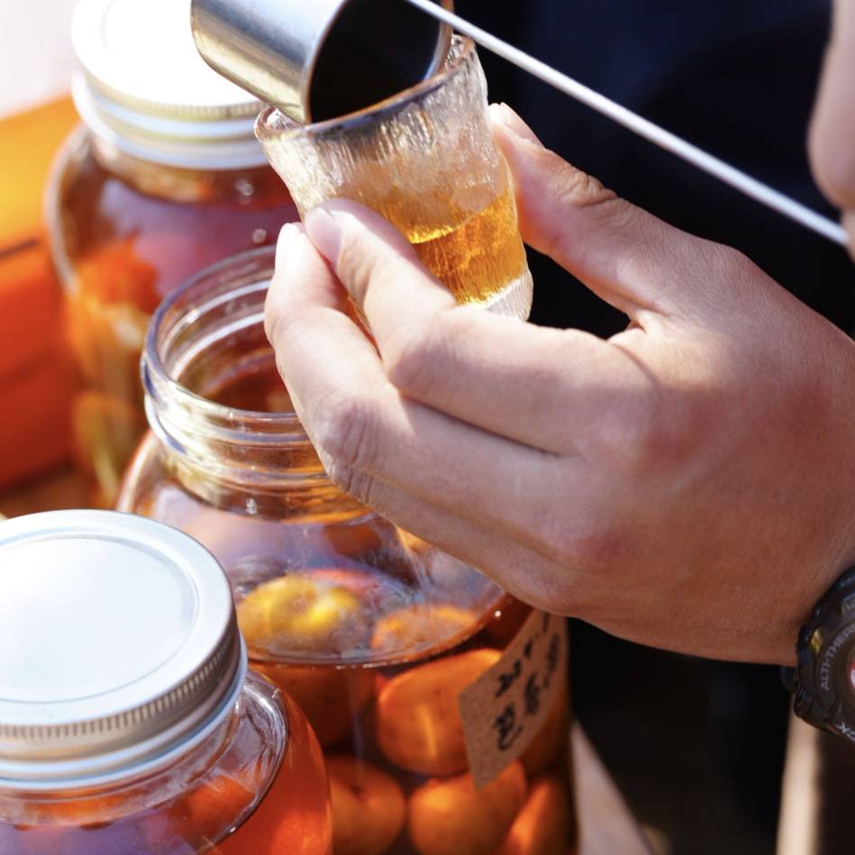 毎年、冬は梅を愛で、夏は青梅酒を仕込みます。広大な梅の花が美しく咲き誇るのはわずか20日間ほどですが、その時期に再び訪れると、ちょうど夏に仕込んだ青梅酒を味わうことができます。舞い散る梅の花を眺めながら、青梅酒や梅の花の蜜の味の記憶に触れると、雨上がりの夏の梅林に戻ったような感覚になります。道中の赤い土の匂いと青い実の香りが混ざり合い、村ではラバや馬が青梅の運搬で大忙し、山全体が青梅の香りに包まれていました。