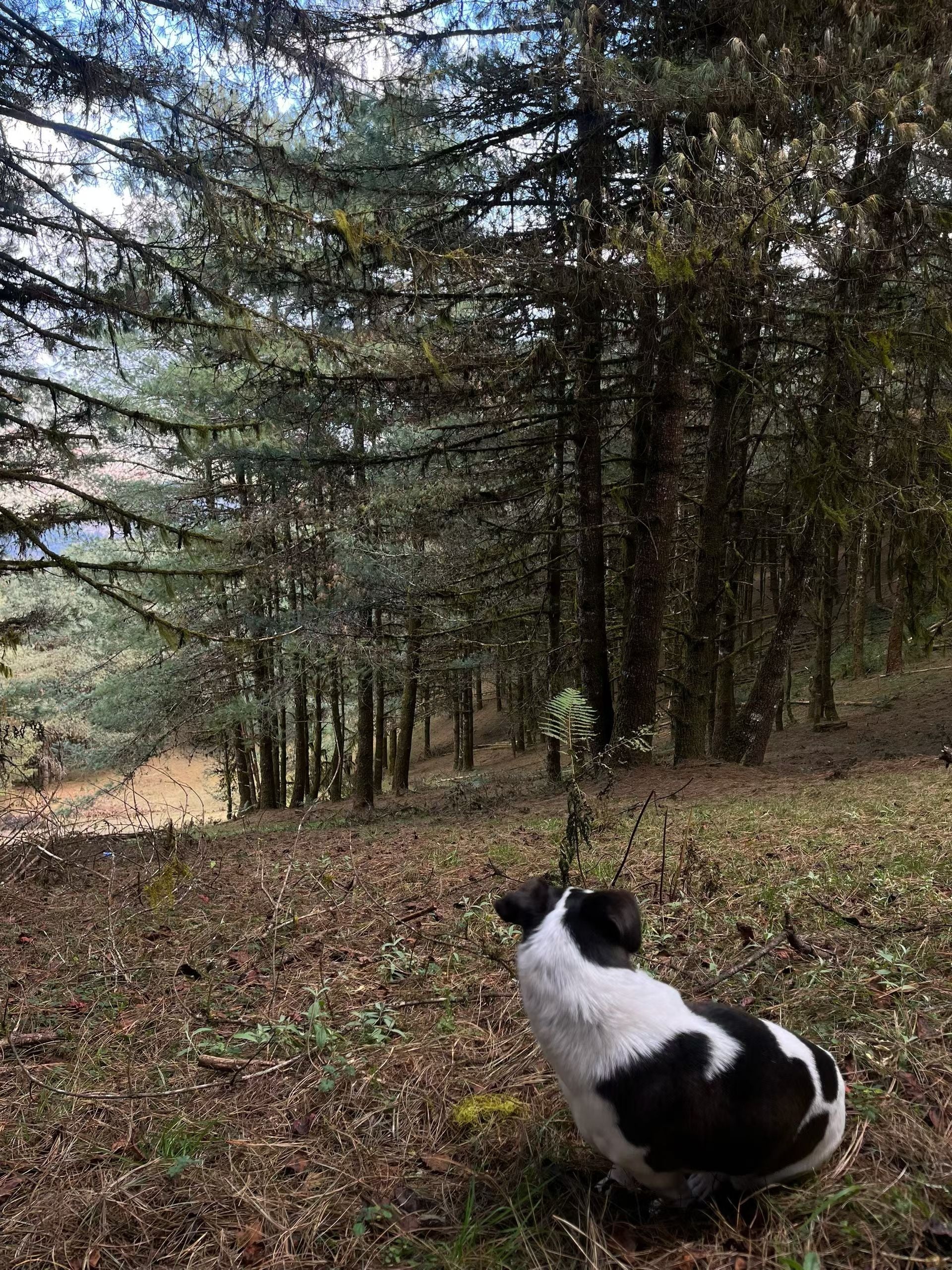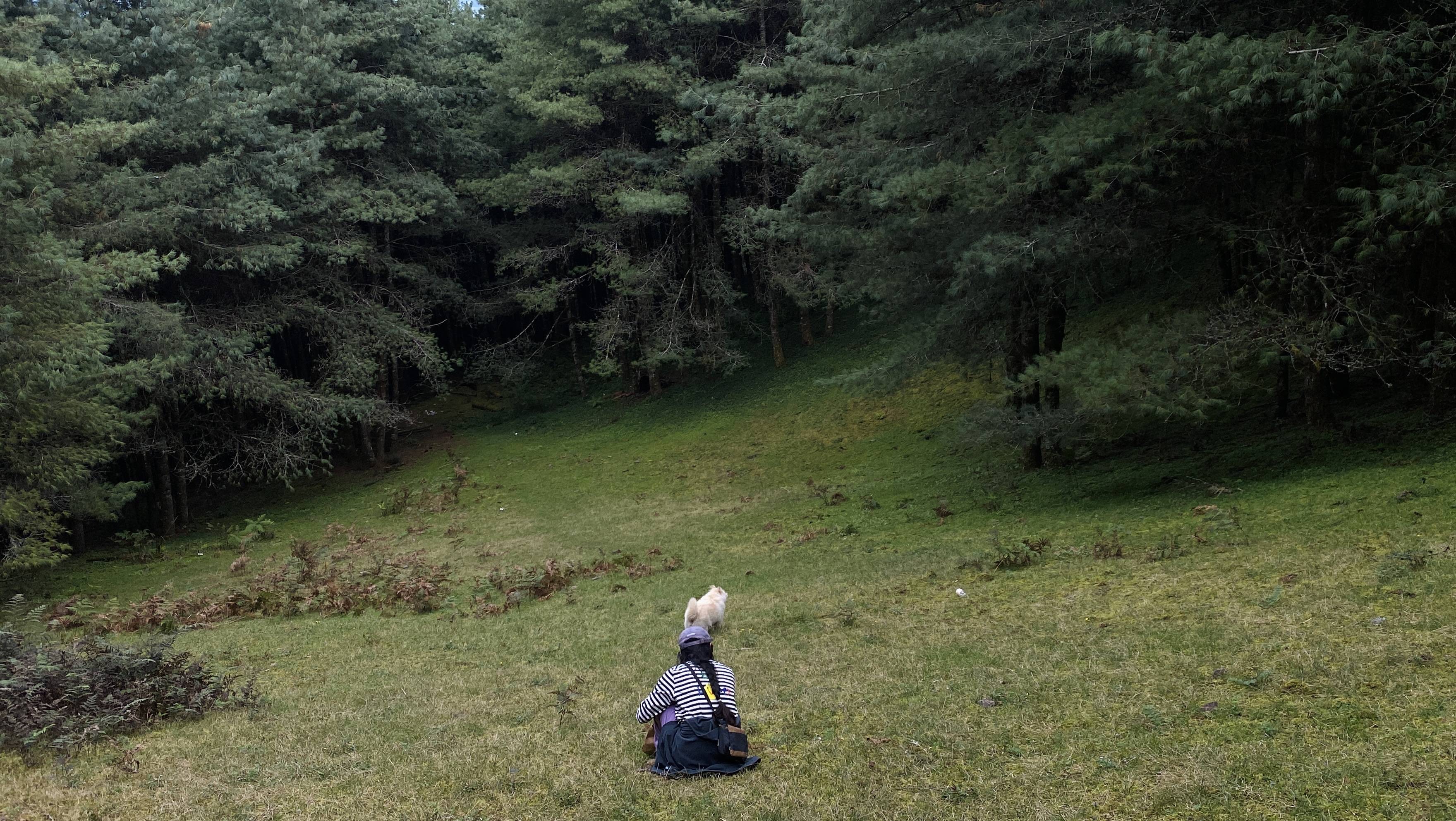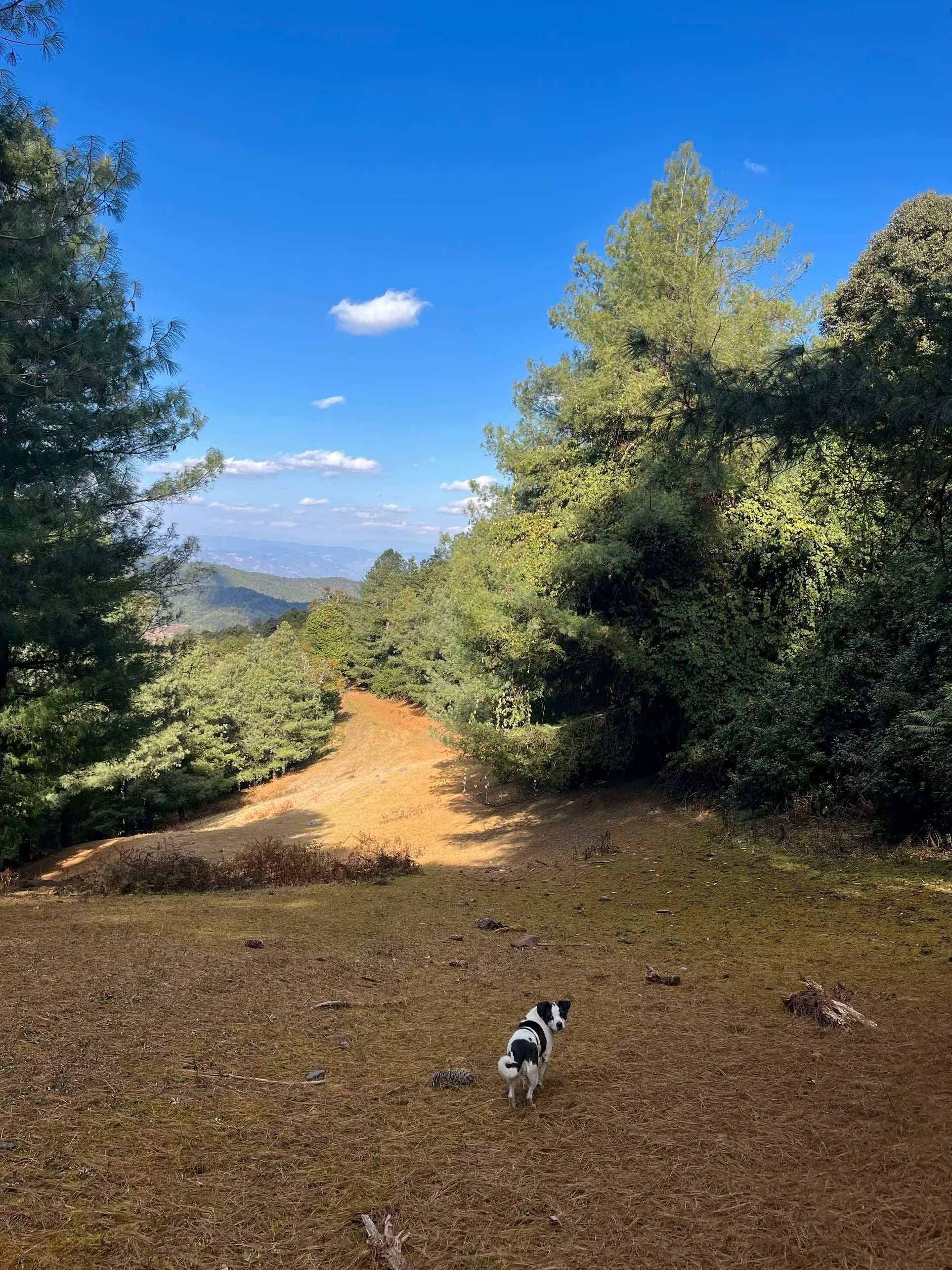 1/2的路线是松林与牧场,辽阔说累了。这里的松林是在山坡上,耸入云端,往前看往后看,都被美得嗷嗷叫。好几次在山坡上借着松针往下滑,很开心。