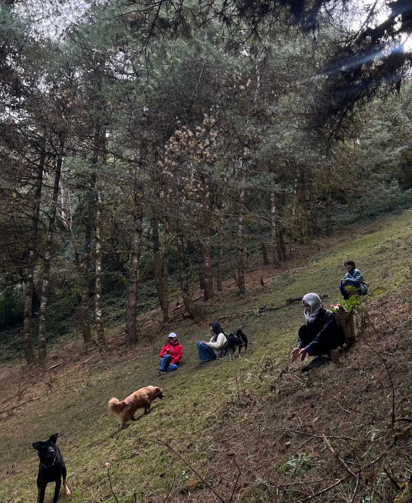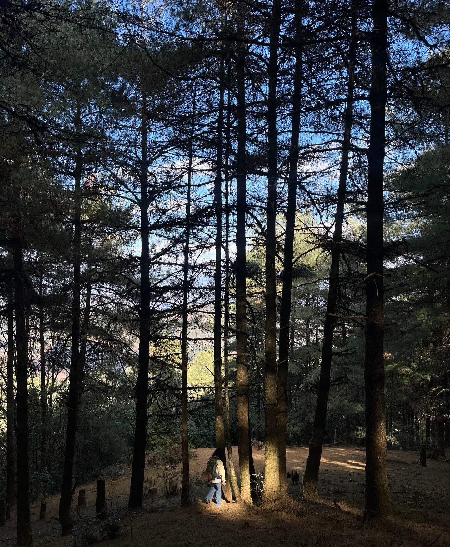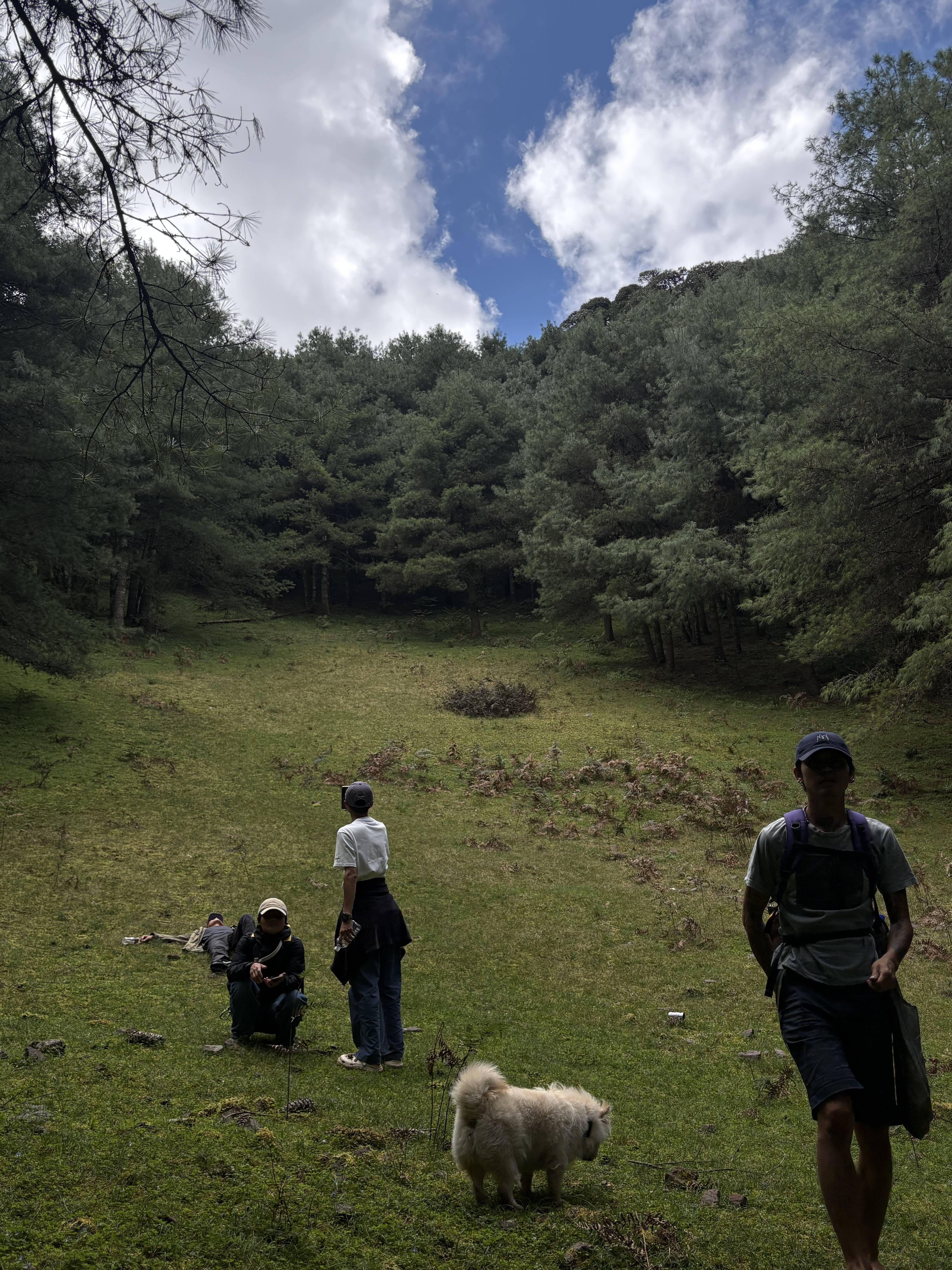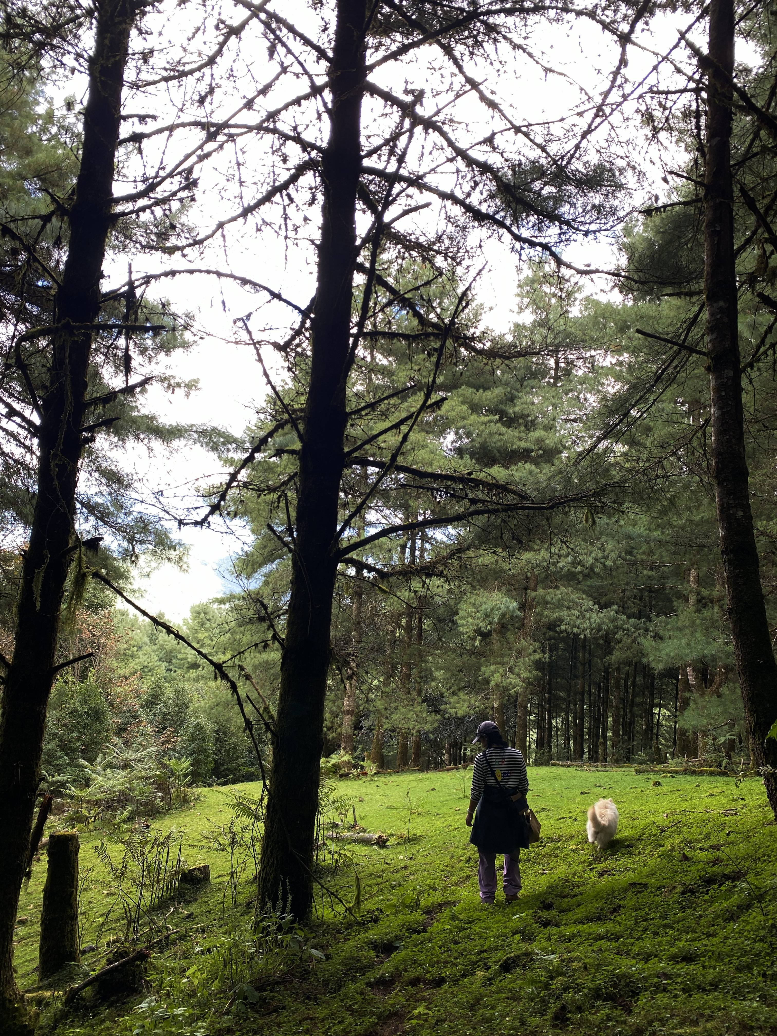 1/2的路线是松林与牧场,辽阔说累了。这里的松林是在山坡上,耸入云端,往前看往后看,都被美得嗷嗷叫。好几次在山坡上借着松针往下滑,很开心。