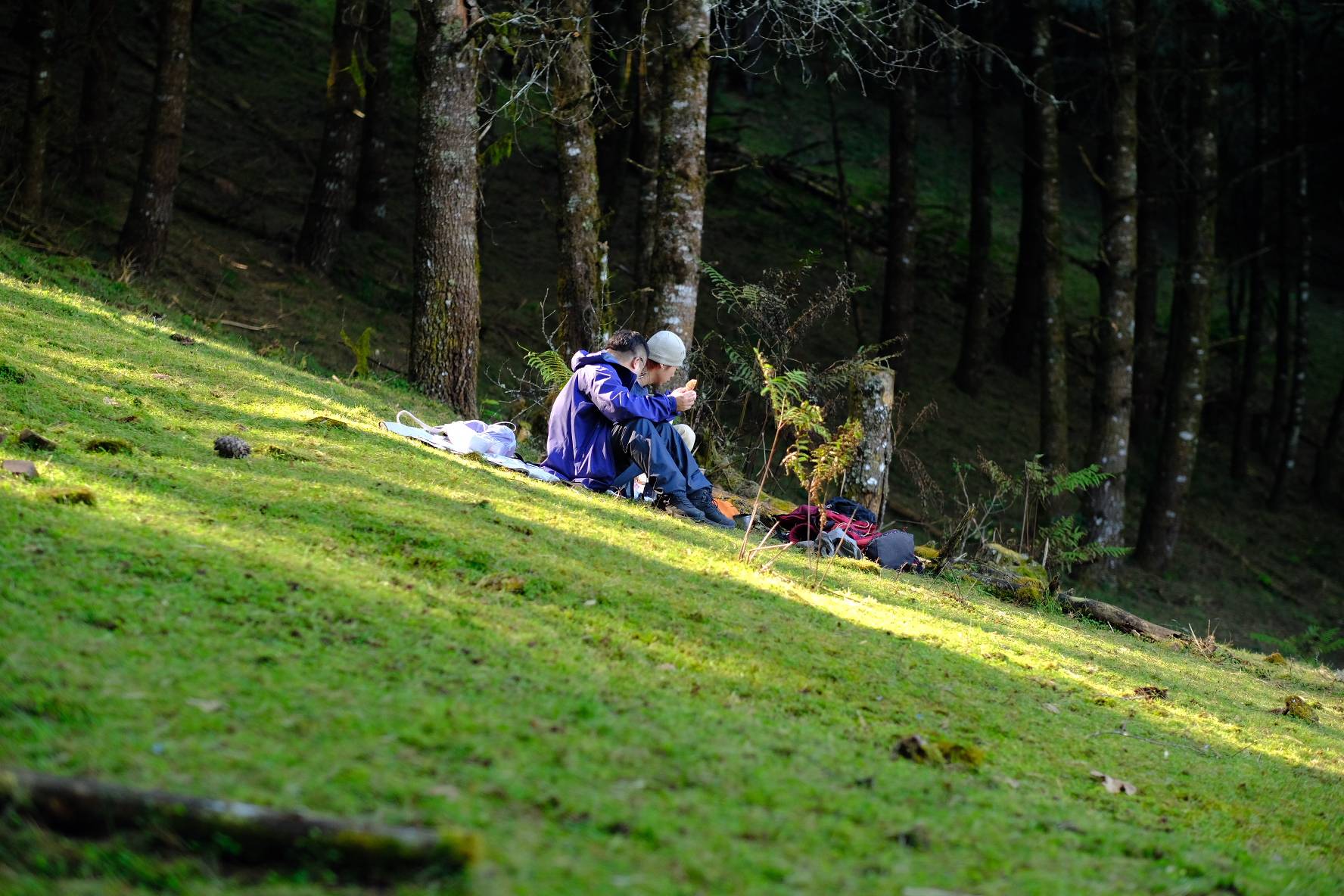 杨米挑了一颗树下野餐,那个区域的光散散漫漫的,我们也是。