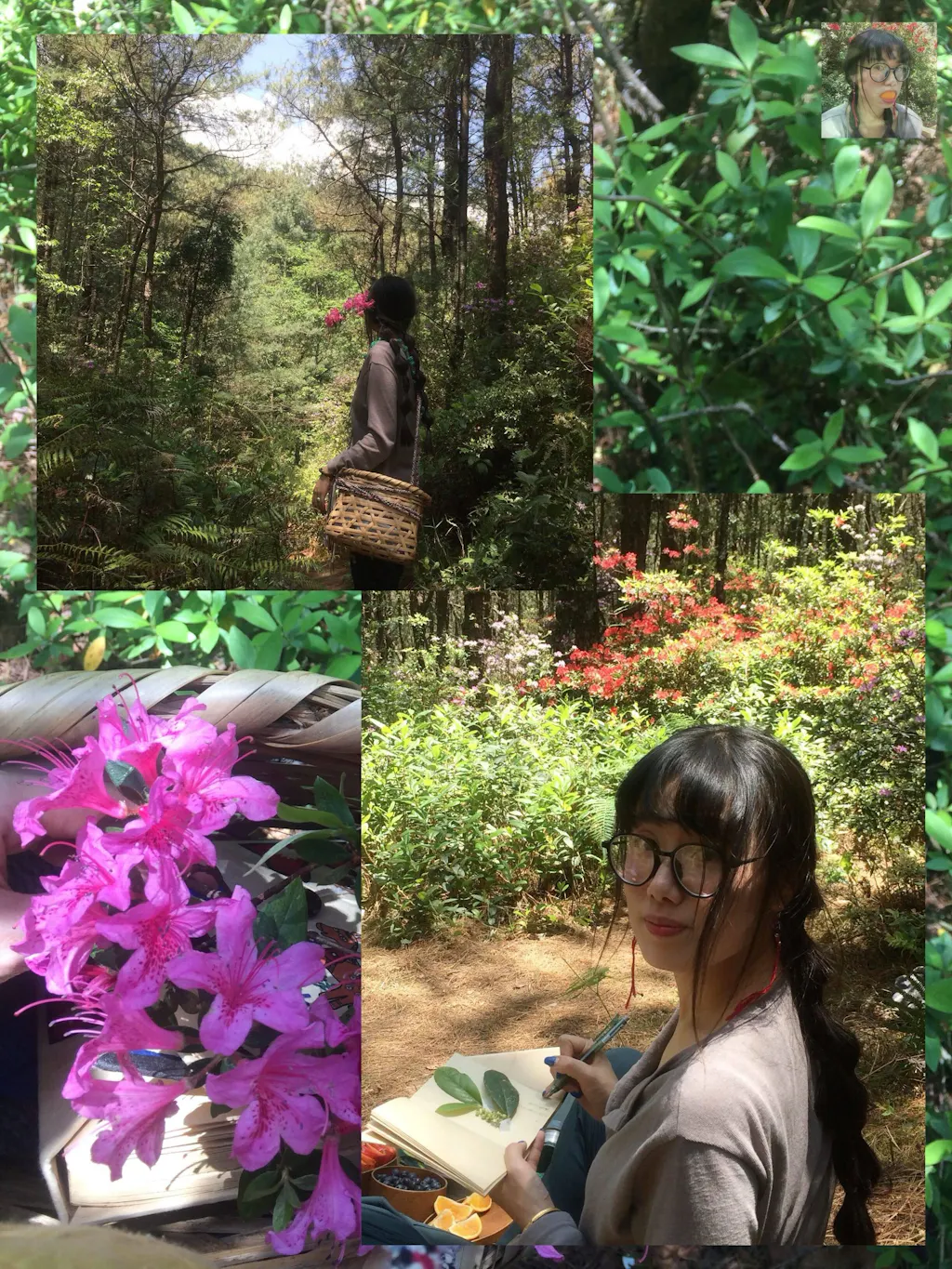 @大理苍山徒步之家 欢欢带着我们尝了枝头上摘下映山红,大白丽杜鹃,青花椒,戟叶酸膜,还有自己做的美味茶点