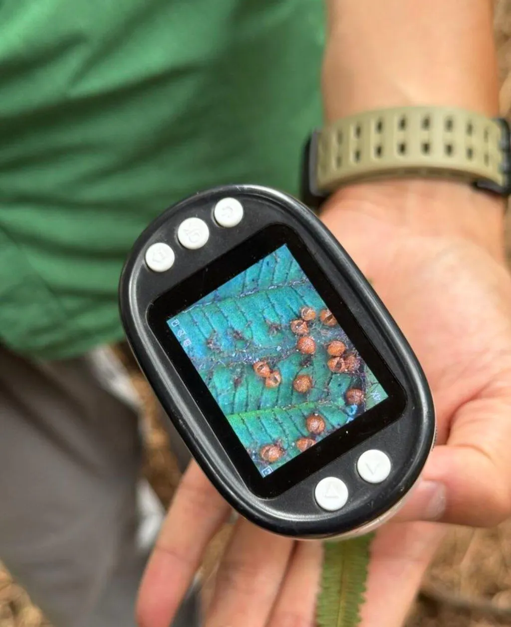 芒萁凤尾蕨银粉背蕨狼尾蕨,每种蕨类相似却又完全不同,第一次见还未成熟的云南核桃树,闻到松树上原生态的松香特别清香,品尝了旺旺test后少见能吃的月季口感有点酸酸的,在显微镜下看蕨类植物像鸡蛋一样的孢子,类似古代战戟的叶子形态的小花。还有野草莓野茶,各种复杂的记不清的植物学名旺旺都如数家珍。