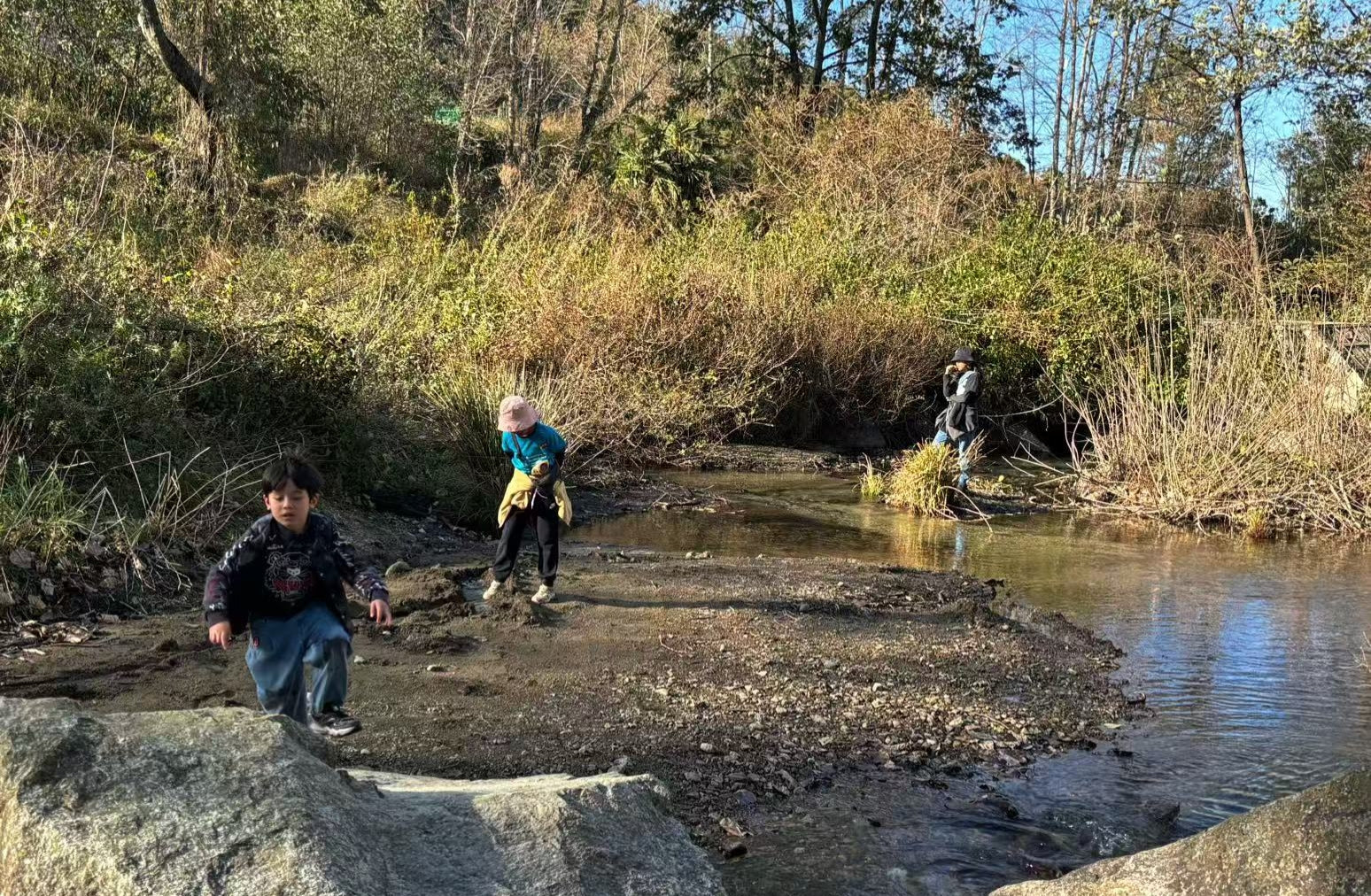 小朋友似乎天然就对植物,动物和昆虫充满兴趣,一路低头寻找,又一路惊喜。大家闻花尝叶,第一次这样慢慢走进山里,认真看那些曾被忽略的小生命:竹节虫,七星瓢虫,蝗虫,还有许多叫不出名字的昆虫。世界忽然变得具体,也变得生动。