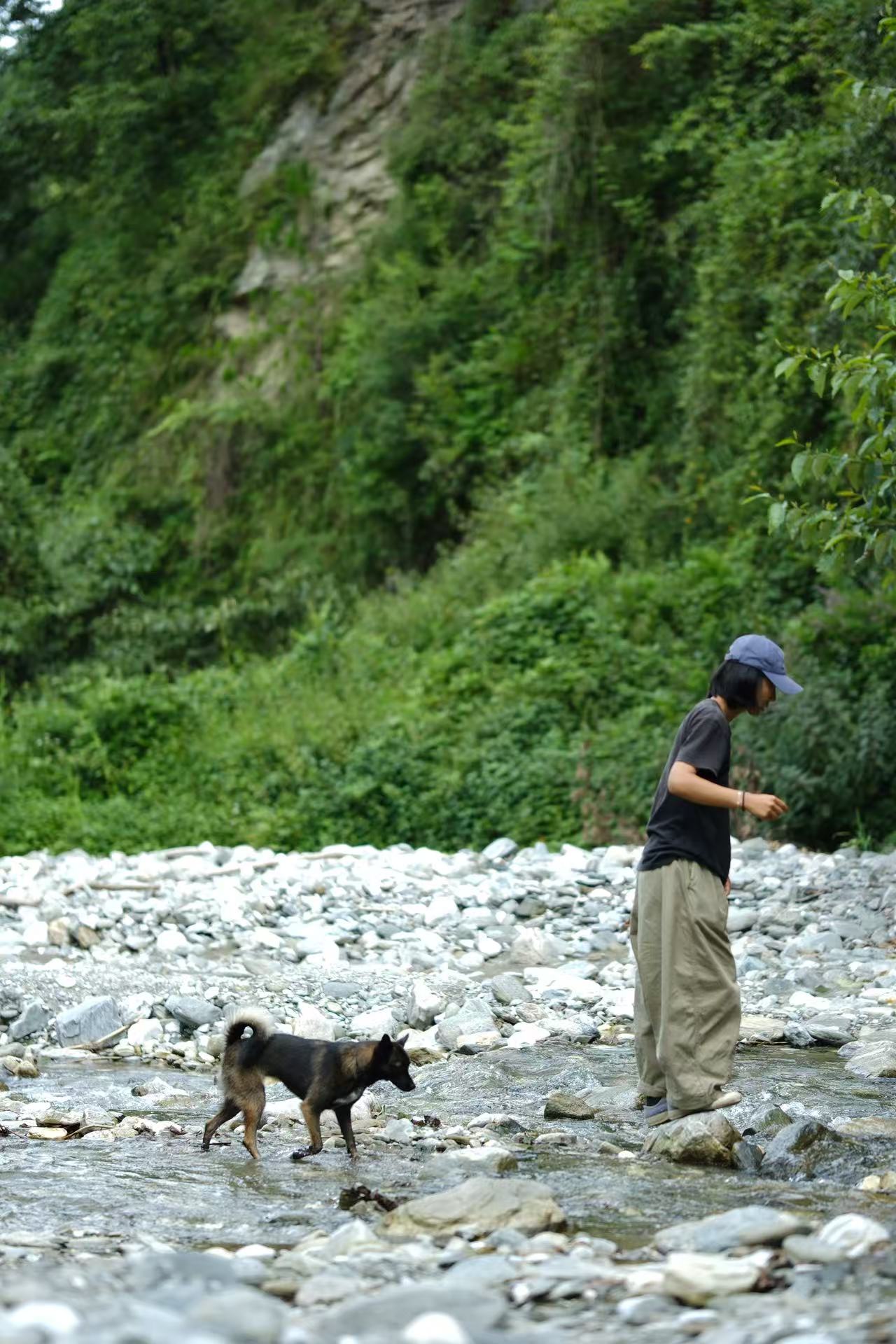 现在她搬了个大院子,有很大的地方可以发挥。2024年徒步时森林里捡的流浪小狗“小溪”,也已经长大了,相伴生活。