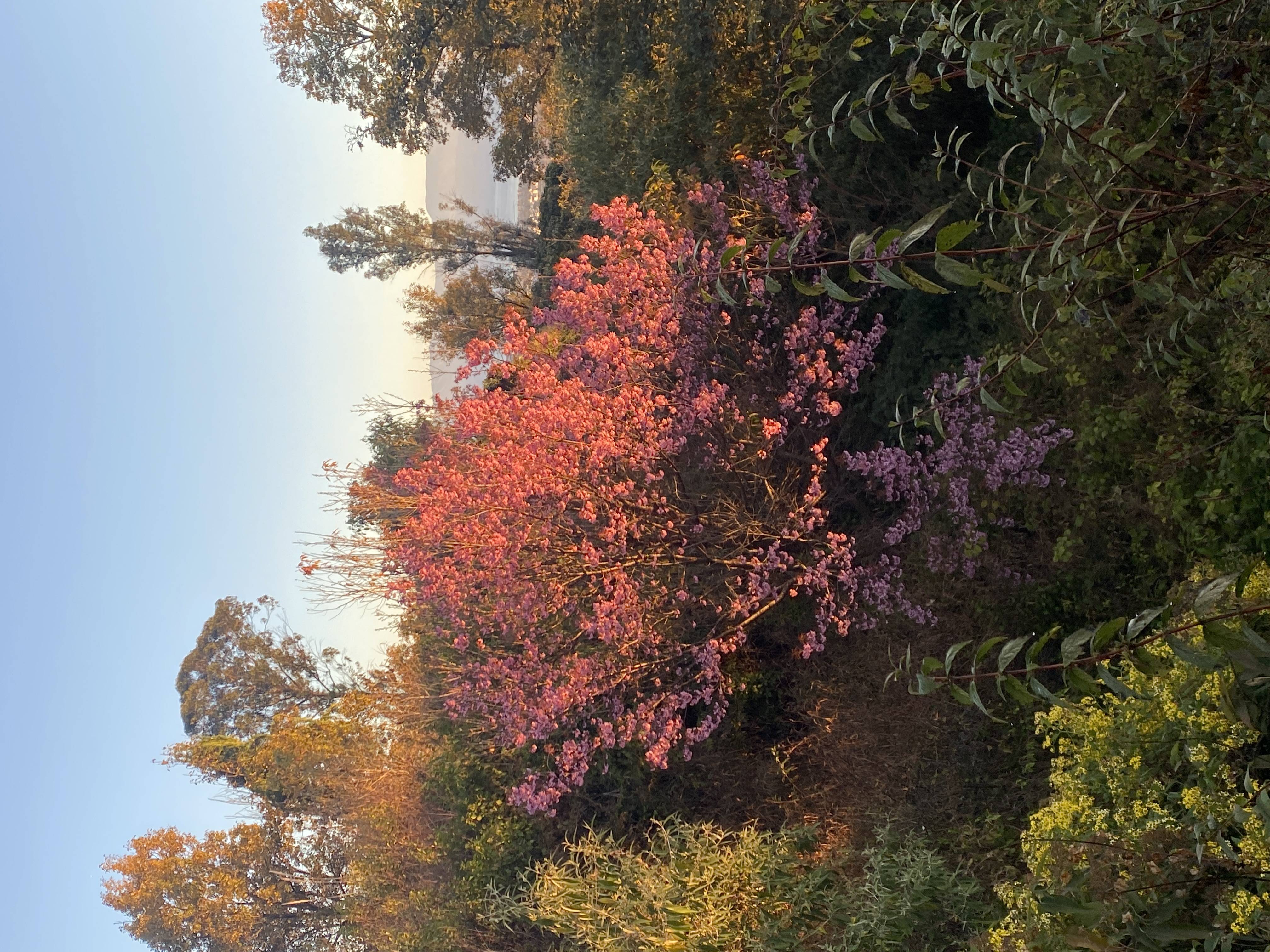 我们沿着小路一路辨认植物,一路往上。随便指一个植物菲比都能告诉我它的名字,故事,甚至药用。菲比不仅对植物指哪儿答哪儿,甚至连小鸟和松鼠都颇有研究,因为只有我们两个人比较安静,我们小鸟和松鼠没有受到打扰都特别活跃,我们花了好长时间去观察林鸟,认识了很多新物种!甚至幸运遇上了本该在春天才出现的珀氏长吻松鼠追逐交配场景,看来春天可能会比我们预想的更快到来