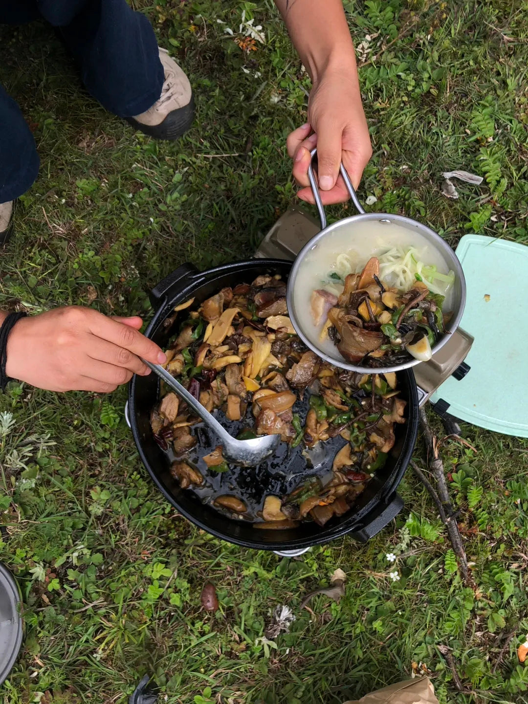 暑假毫不猶豫地又選擇了來大理,這次在推薦下選擇了西坡山裡的一天,天氣陰沒有下雨,很舒服,牧場開闊,有牛羊在散步,整個人覺得放空了。很巧這次也是aruna和小喜帶隊,還有小狗,沿途碰到很多菌子,認識了各種各樣的,還吃到了很好吃的農家飯,有一個瓜菜苗(不知道是不是這個名字)真是太好吃了!