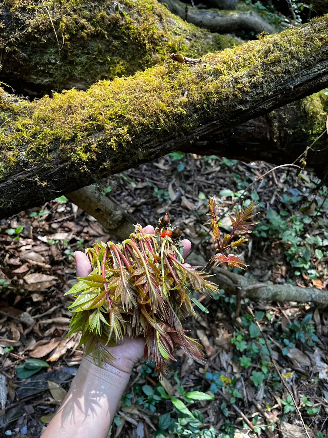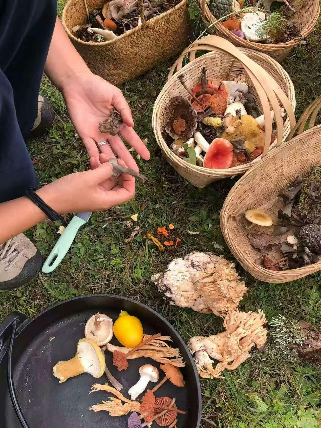 採松果也非常好玩的,尤其對於城市裡的人。導遊小景小姐姐,帶著她可愛的小狗,帶我們幾個走當地村民走的路上山,一路上跟我們講解各種植物、松果、花、葉子、蕨類,還看到了小浣熊的粑粑,看到了飛來飛去的野雞。小景還背了滿滿一筐的吃喝,給我們做野餐。下山的話,還會穿過最美的寂照庵,可以去吃個素齋。